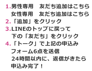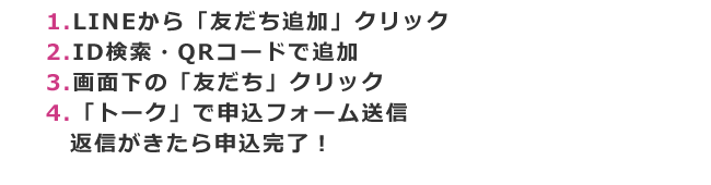 ※LINE申し込みをしても、こちらから返信がない場合は受付完了とならないのでご注意お願いします。